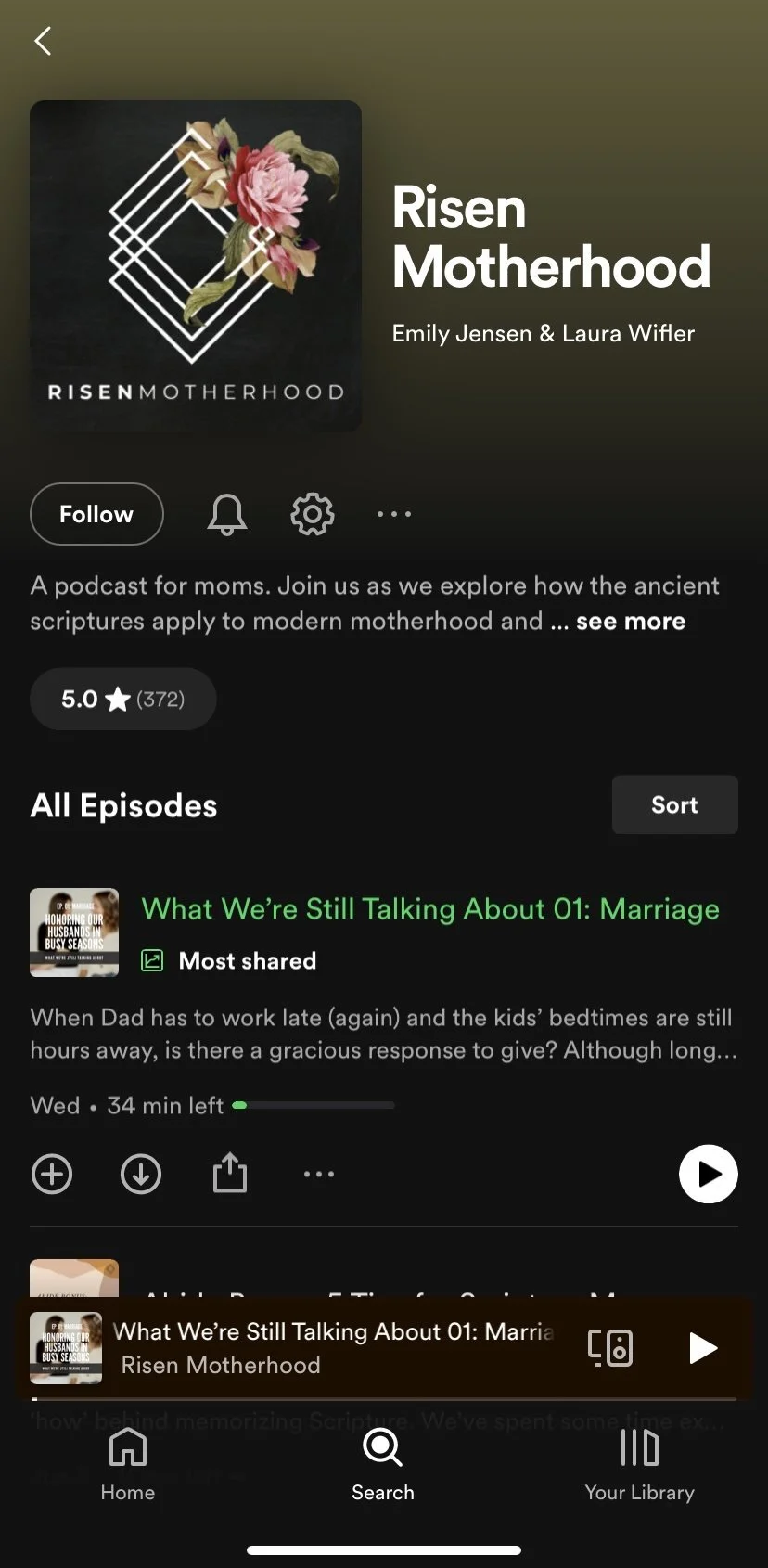 Under “Shows”, tap on the Risen Motherhood icon. It has a black background and a pink flower on it.